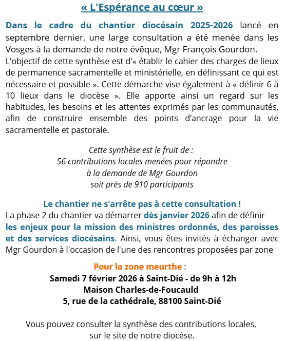 "L'espérance au coeur" - Chantier diocésain